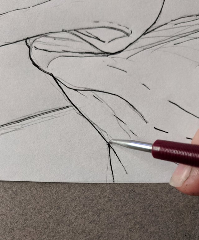 3: pressing over the lines with a blunt pointed tool
