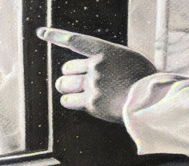 Now I had established the direction of lighting which would set the tone of the rest of the piece. I used my fingers to blend larger swaths and tortillons for finer spots.
